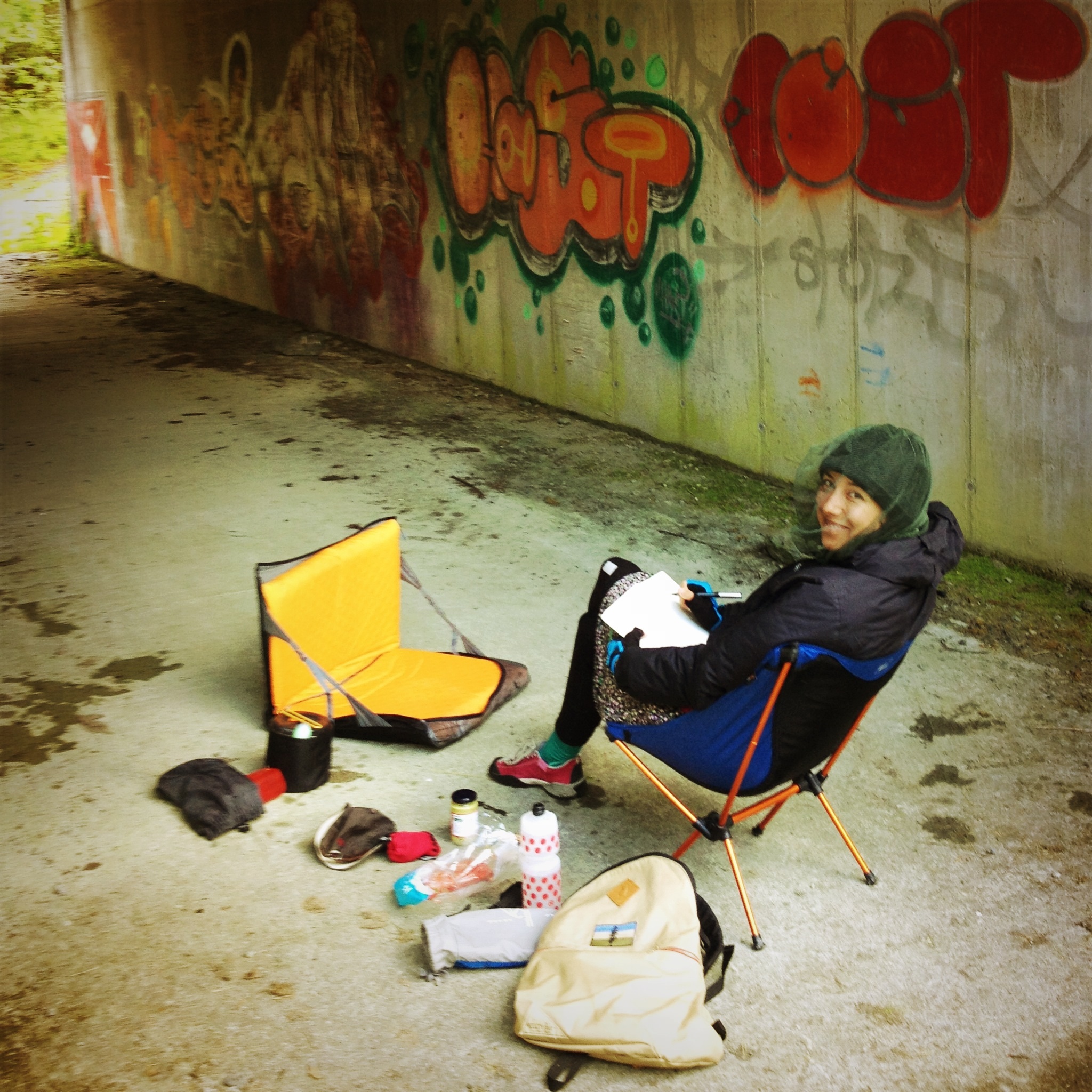 We had our first true bum meal in a graffiti coated freeway underpass.